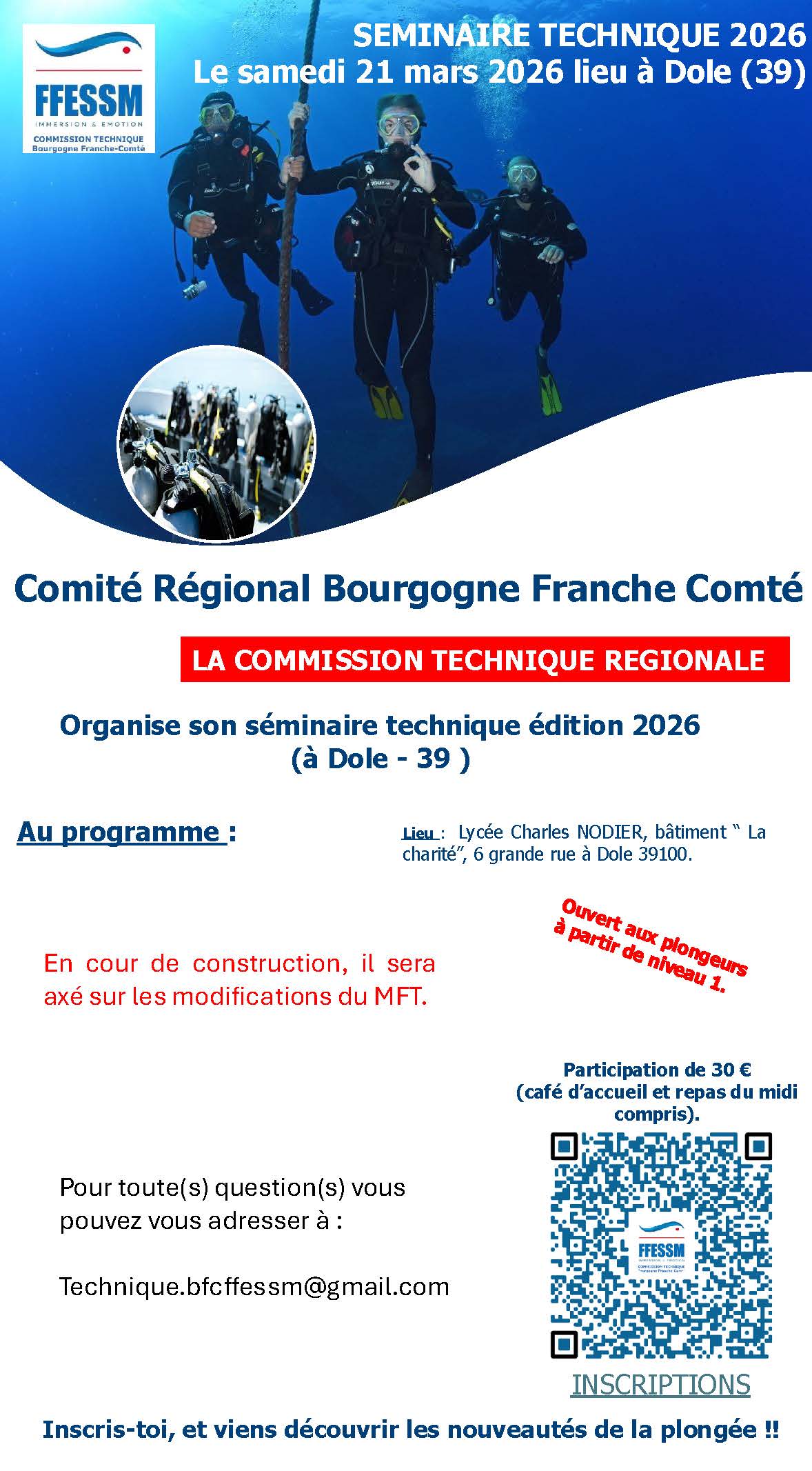 Le programme n’est pas encore bouclé mais il sera axé en grande partie sur les nouveautés de la plongée et les modifications du Manuel de Formation Technique (MFT).